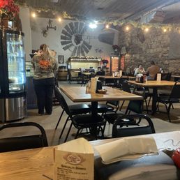 This cafe was recommended to us alongside a BBQ place but seeing as we were walking by we decided to try it out. The place was hopping which is a good sign so we walked inside and saw a giant Easter tree. It took a minute to find out we could seat ourselves but we got a table and were served pretty quickly. I had the gluten-free cheeseburger and fries. I'm not sure if the fries were gluten-free tho as they seemed to have a coating so be aware. They have giant pies with piles of meringue but we didn't get any this time. Maybe next time. That buttermilk one looked intriguing. Parking is located in the town square and this place is located near the museum.
